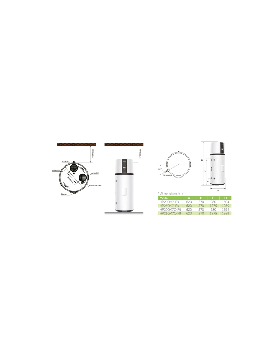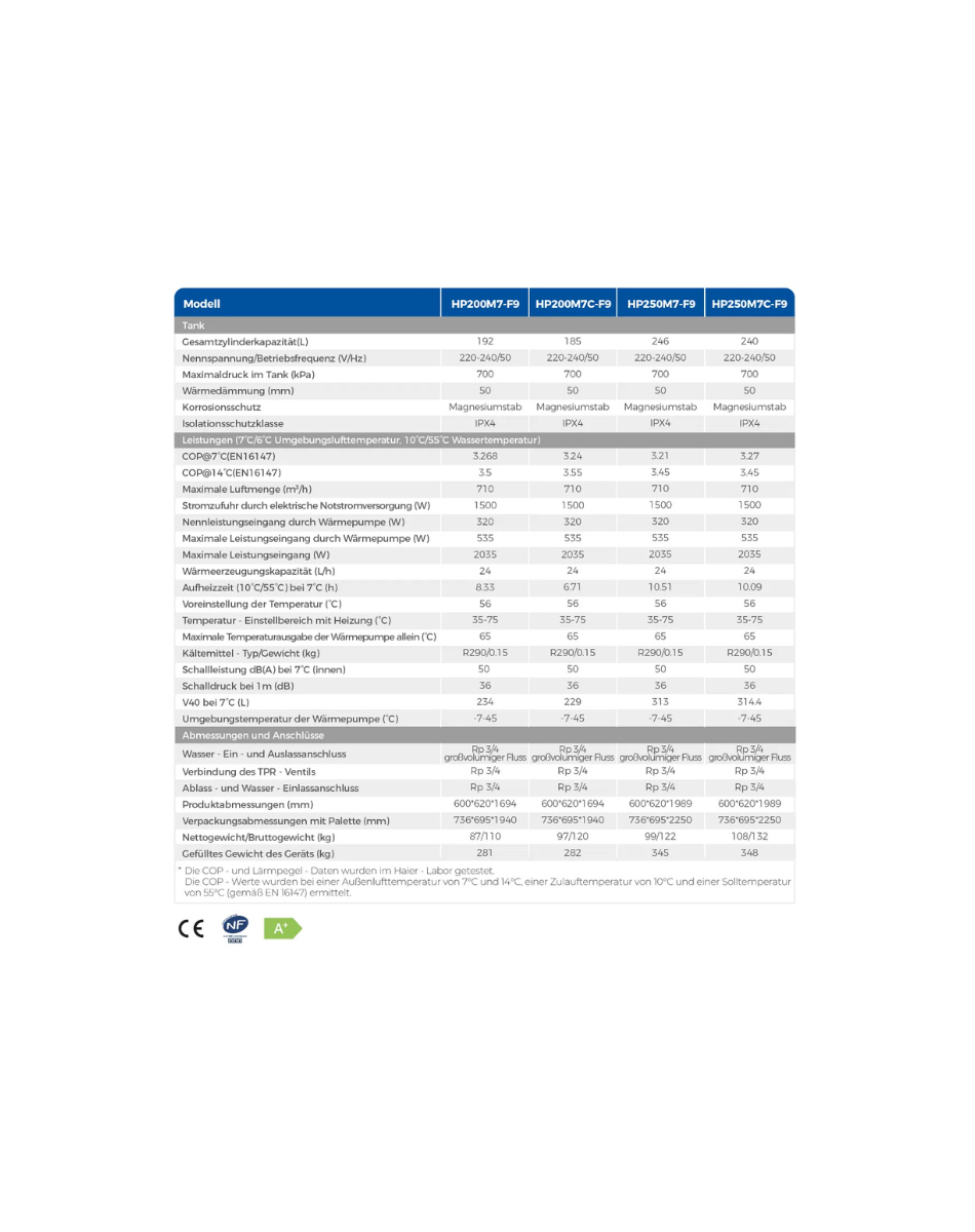 Der Haier M7 Wärmepumpen-Wassererhitzer, der mit R290-Kältemittel betrieben wird, liefert im Gegensatz zu herkömmlichen Wassererhitzern heißes Wasser mit Hilfe der Wärme in der Luft, was den Energieverbrauch senkt und eine gute Energiebilanz von A+ bietet. Die neue M7-Serie ist in 2 verschiedenen Tankversionen erhältlich: 200L und 250L.